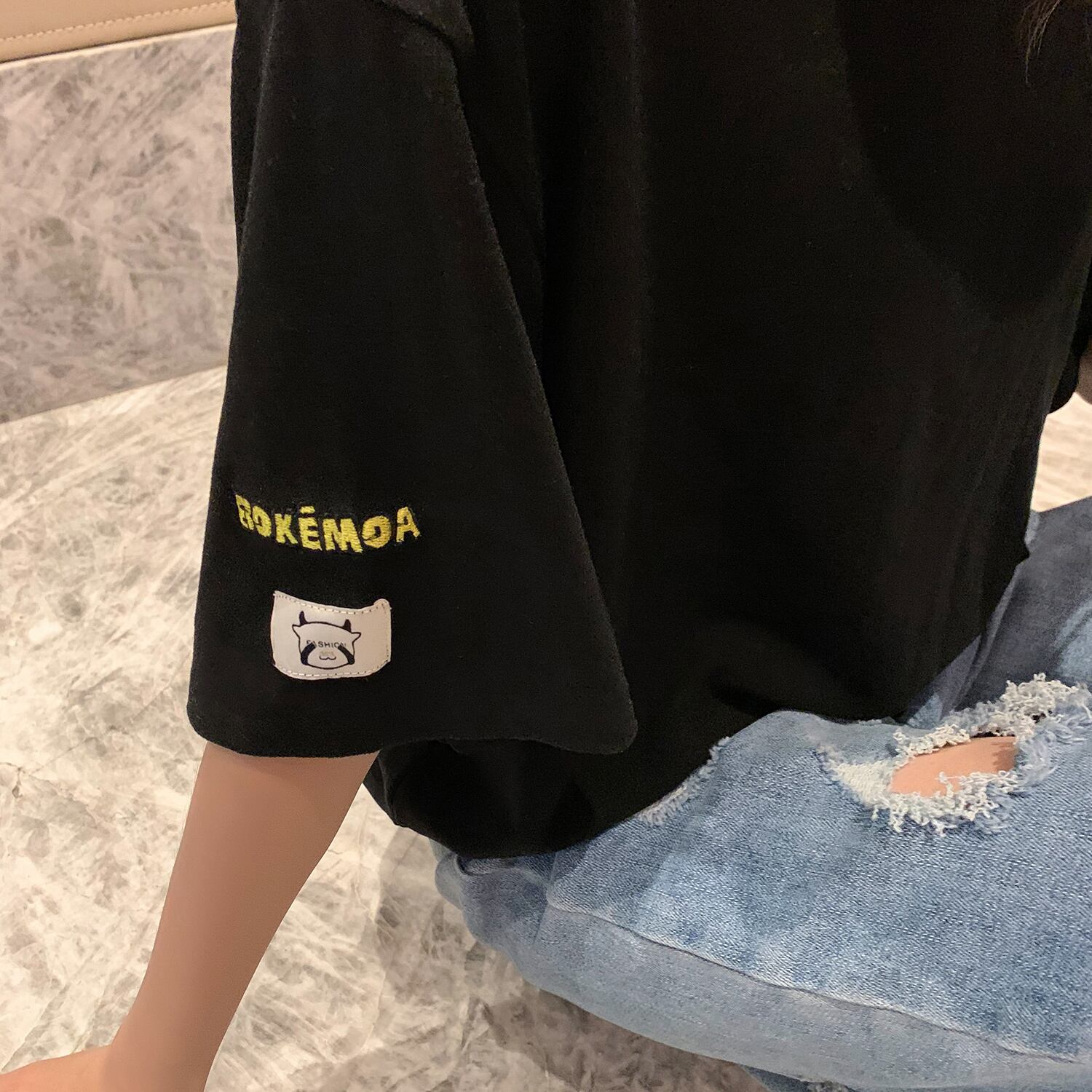 スプリングスタイルラウンドネックルーズスリーブTシャツ ホワイトトップス 春物 Oネック 6Du_Shop_Women43610067994
