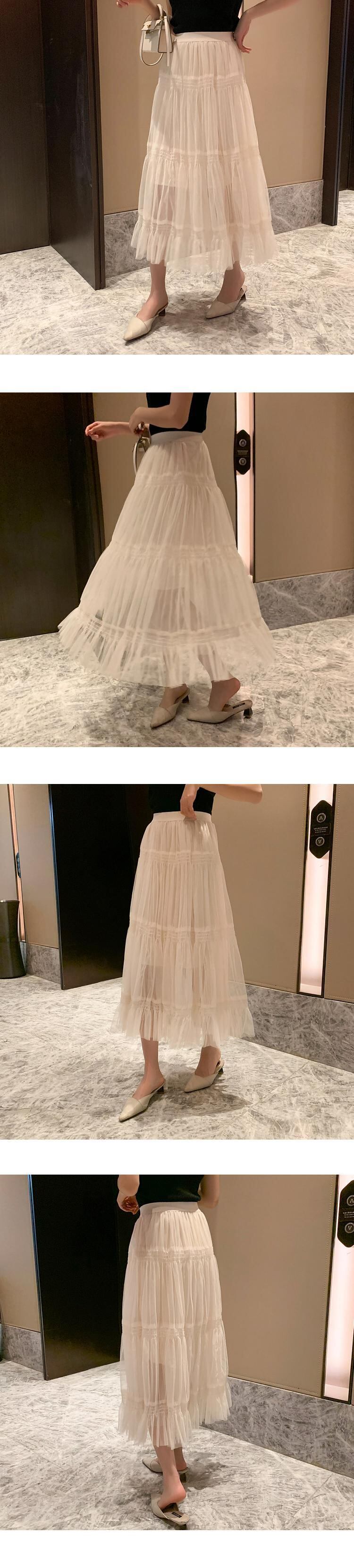 スプリングスタイルハイウェストウェストルーズメッシュスカート ブラックAライン 春物 6Du_Shop_Women51368793612