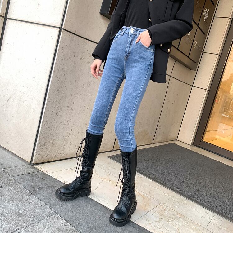 スプリングスタイルハイウェストスリムジーンズ レディース薄手カジュアルパンツ 春物 6Du_Shop_Women68537631927