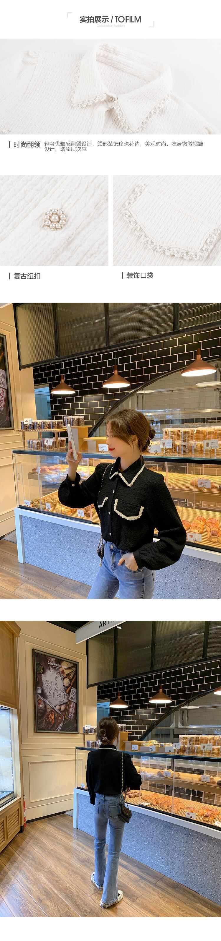 スプリングスタイルスタンダードシャツ ブラックトップス レトロ 春物 ステッチ 6Du_Shop_Women93125844632