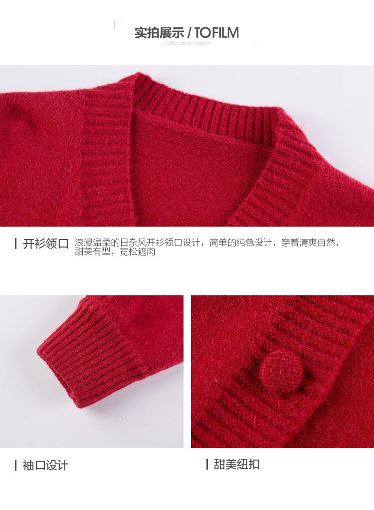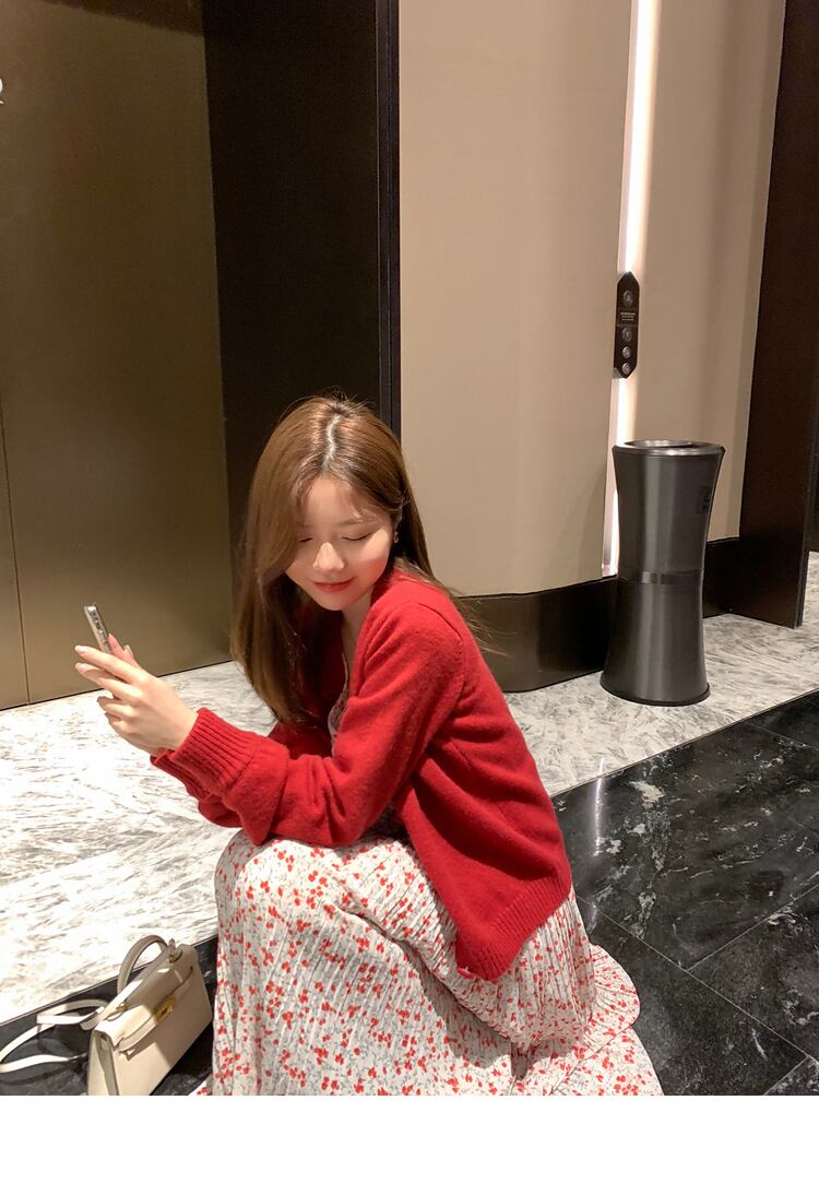 ショートニットカーディガンスプリングスタンダード薄手レッドセーター ジャケット レトロ 春物 6Du_Shop_Women81558317702