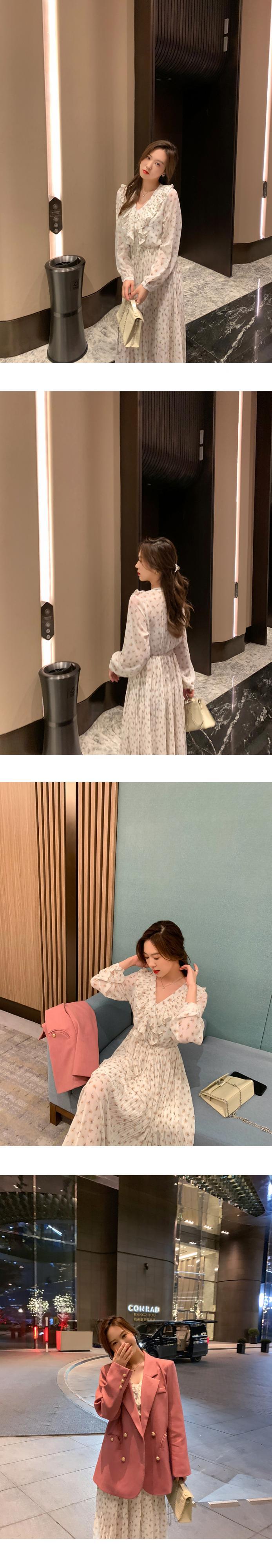 Vネックフローラルドレス スプリングスタイルウェスト薄手スカート 大人ガーリー スウィート キュート カジュアル 春物 花柄 6Du_Shop_Women69607382378