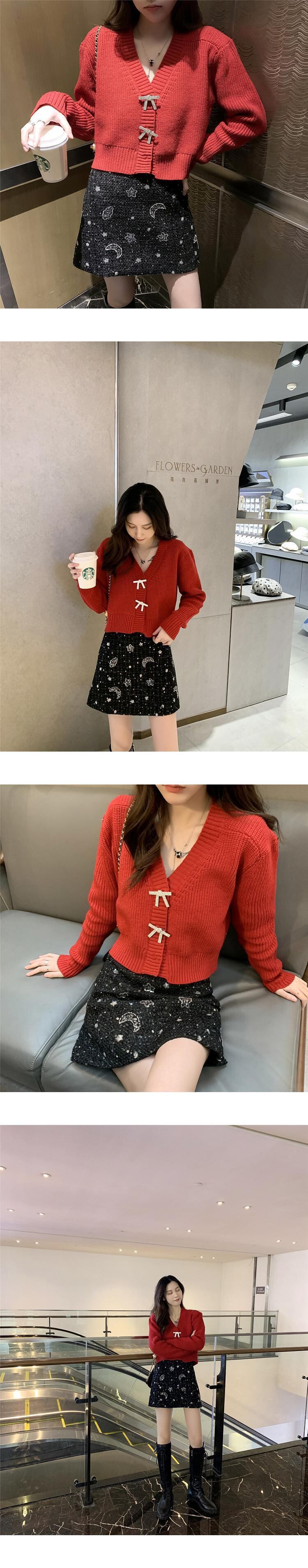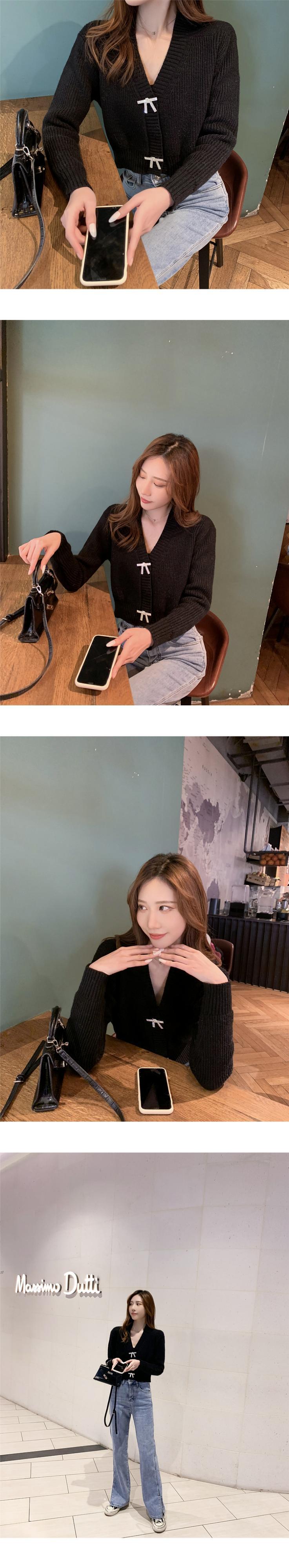 スプリングスタイルルーズショートニットセーター レディースボタンカーディガンジャケット リボン 春物 6Du_Shop_Women49007398189