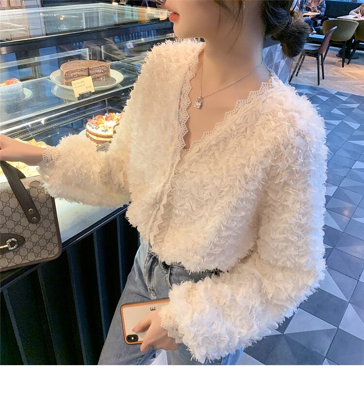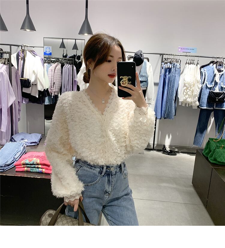 Vネックレースシャツ スプリングホワイトトップス 大人ガーリー スウィート キュート カジュアル 春物 6Du_Shop_Women9288515364