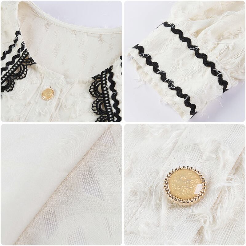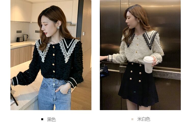 カラーレースシフォンシャツ スプリングスタンダードブラウス レトロ 春物 ステッチ 6Du_Shop_Women17196455536