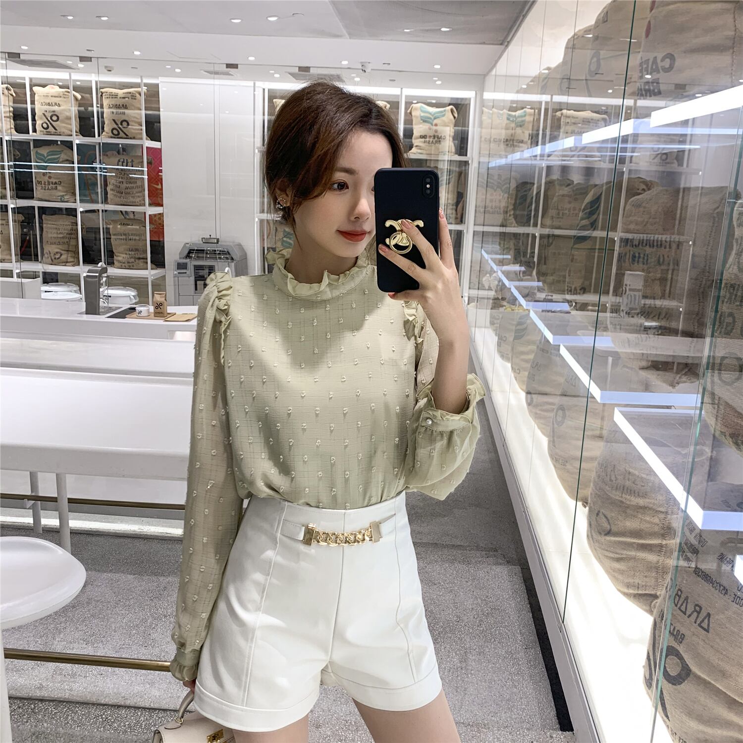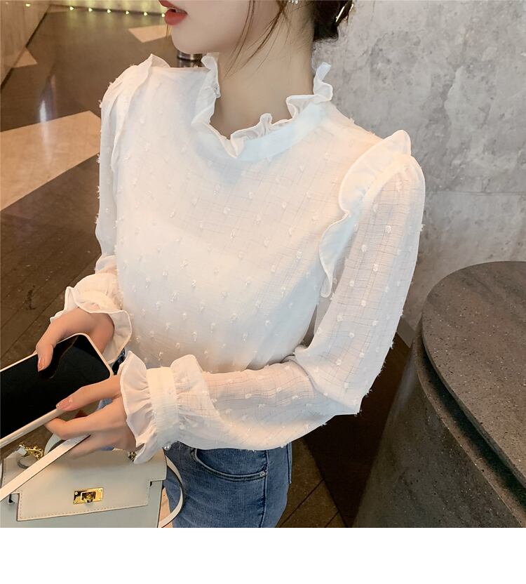 カラー水玉シフォンシャツ レディーススプリングホワイトトップス 大人ガーリー スウィート キュート カジュアル 春物 6Du_Shop_Women63620276533
