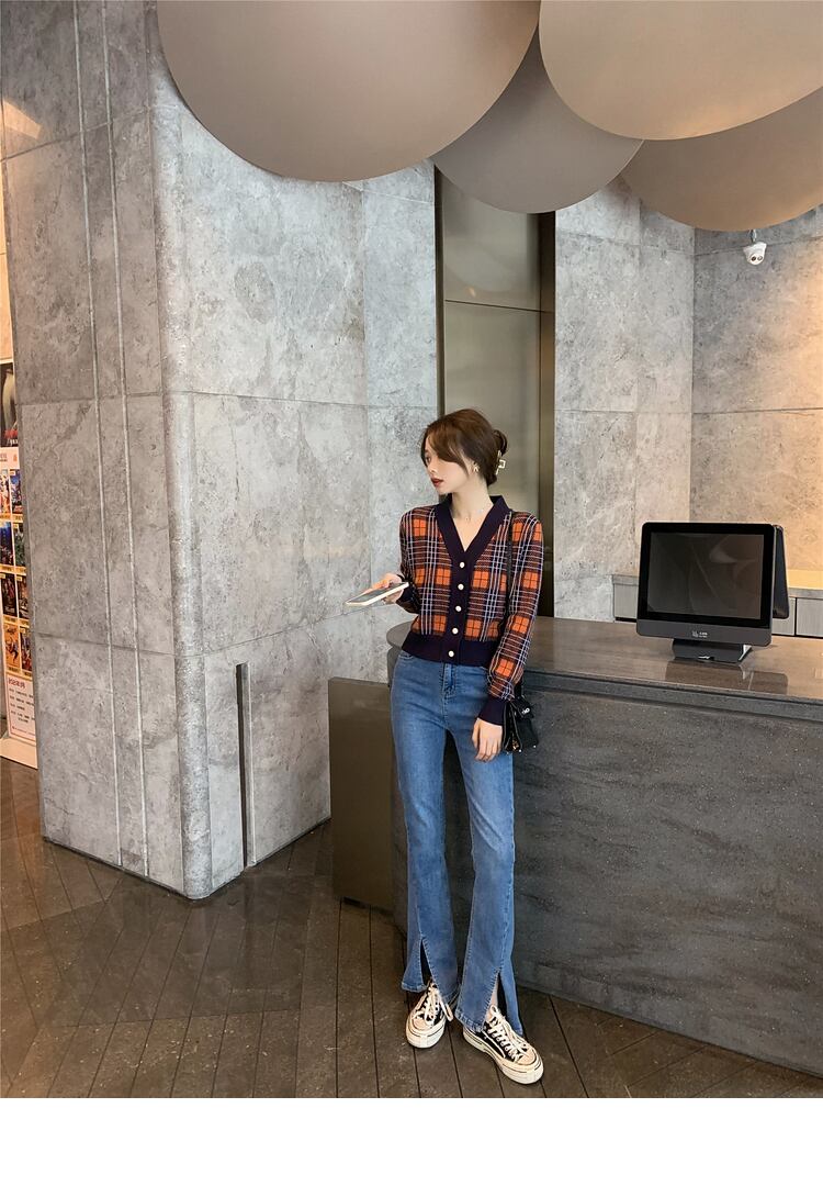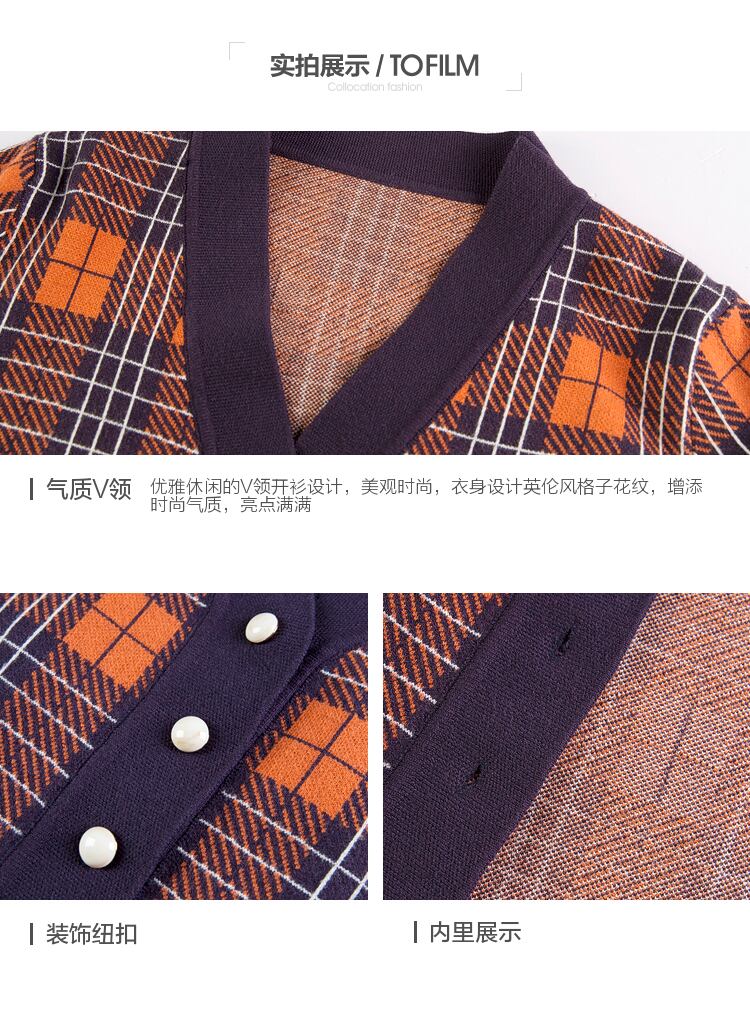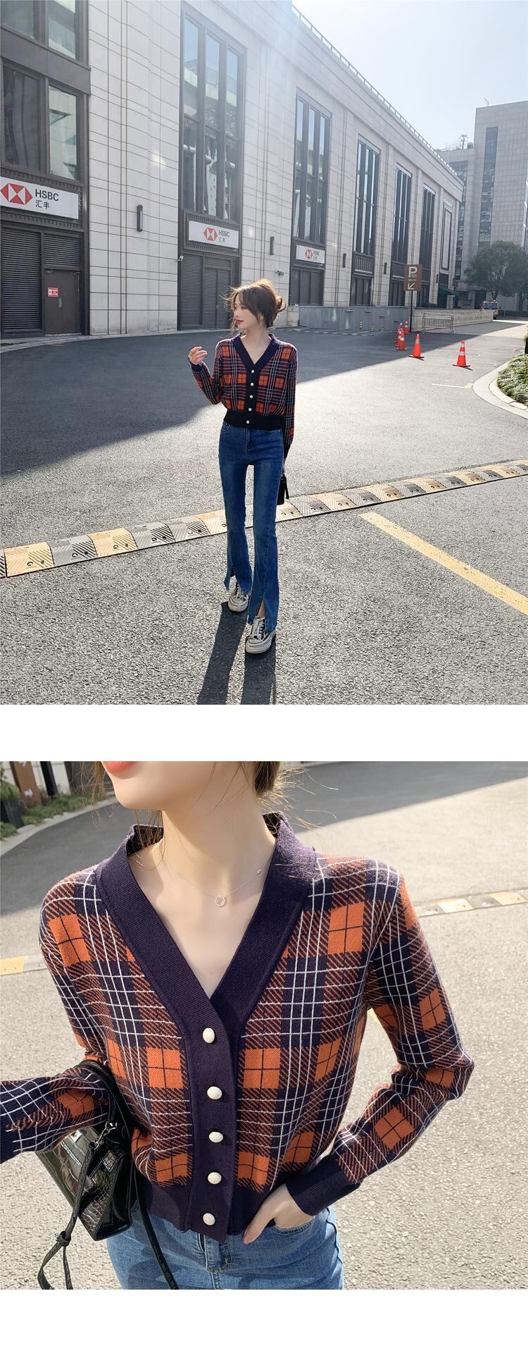 Vネックスタンダード格子柄セーター スプリングスタイル薄手カーディガンジャケット レトロ 春物 6Du_Shop_Women62616691394