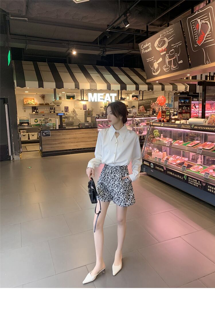 スプリングスタイルハイウェストウェストワイドレッグフローラルショーツ カジュアルAラインパンツ 春物 ブルマー 花柄 ワイドパンツ 6Du_Shop_Women75742855402