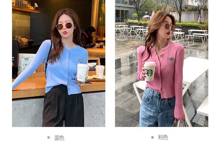 スプリングサマースリムショートニットカーディガン薄手ブルートップス 春物 夏物 6Du_Shop_Women77584854104
