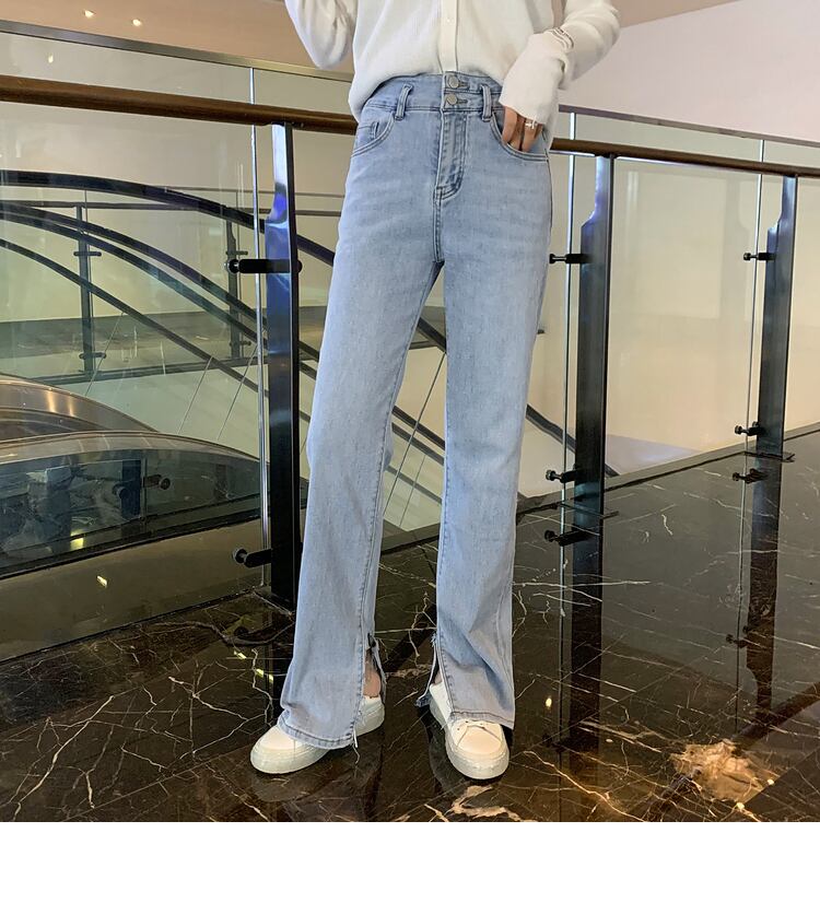 スプリングスタイルハイウェストウェストサイドスリットワイドレッグジーンズ レディースルーズカジュアルパンツ 春物 ワイドパンツ 6Du_Shop_Women34874714737
