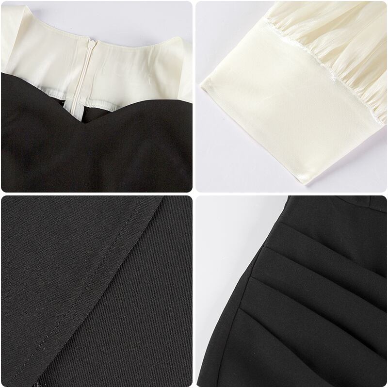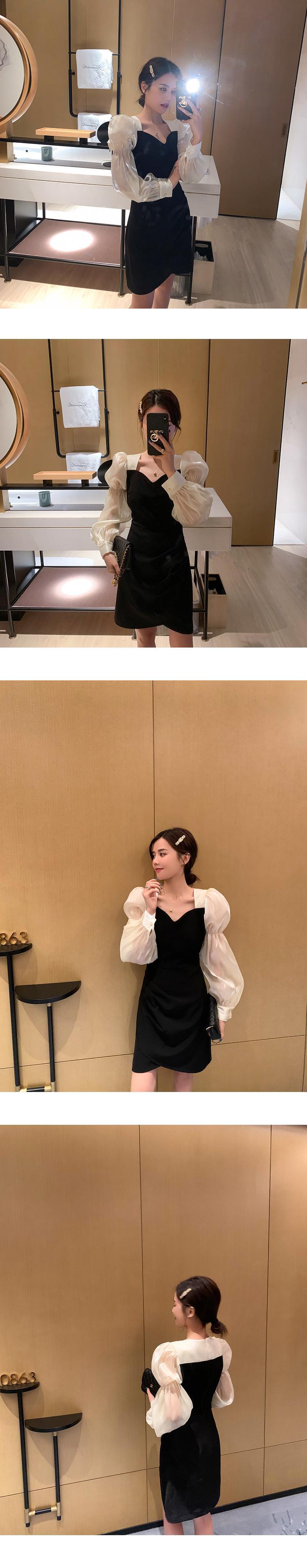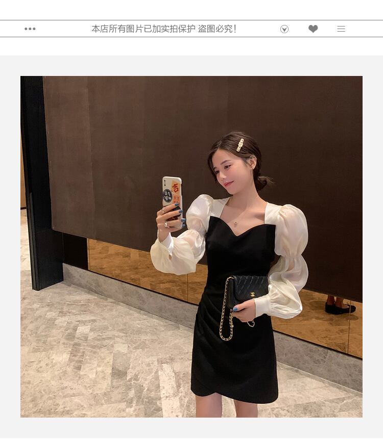 スプリングスタンダードスリーブドレス スタイルAラインブラック レトロ 春物 スクウェア 6Du_Shop_Women54269658935