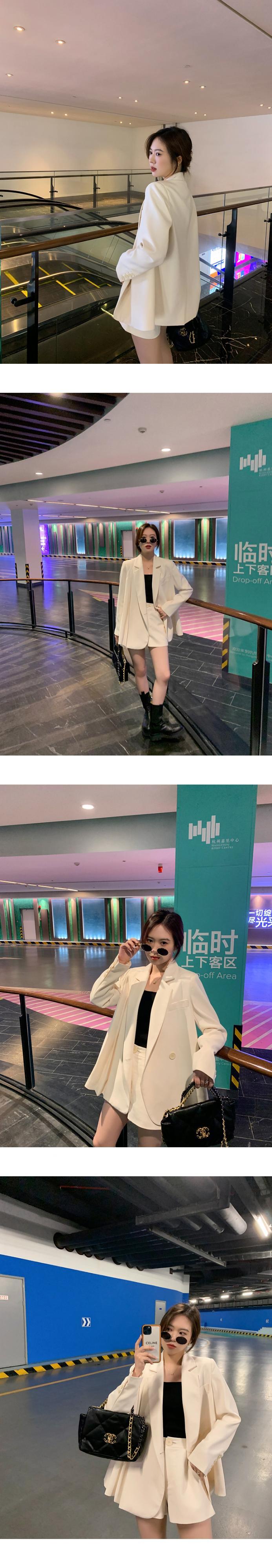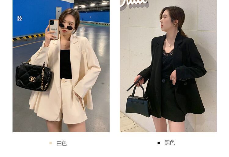 色:白いスーツ,ホワイトショーツ,黒いスーツ,黒のショートパンツ