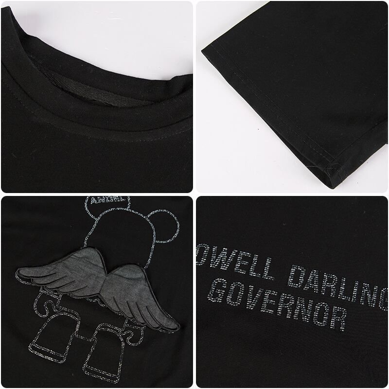 スプリングサマーTシャツ ルーズブラックトップス 春物 夏物 6Du_Shop_Women20729620162