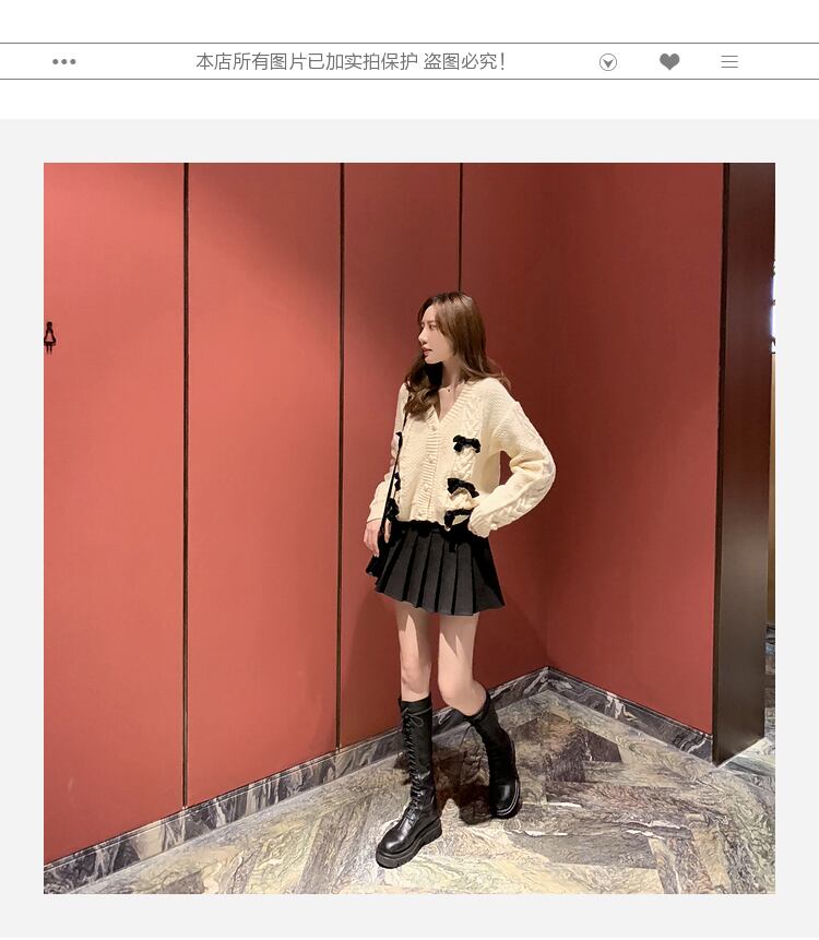 Vネックショートレッドセーター カーディガンジャケット スプリングスタンダード レトロ 春物 6Du_Shop_Women59420941370
