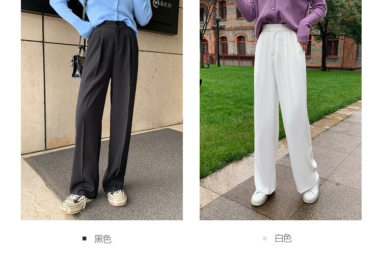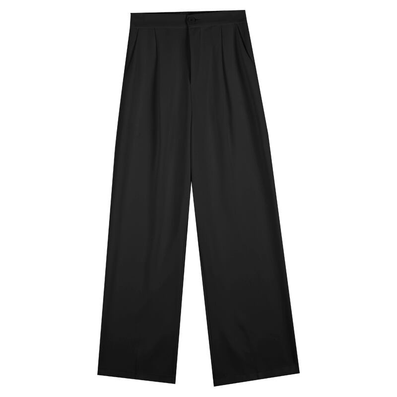 ウェストワイドレッグパンツ レディーススプリングスタンダードルーズブラックカジュアル レトロ 春物 ワイドパンツ 6Du_Shop_Women91613449920