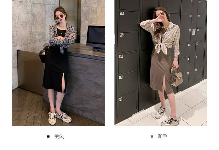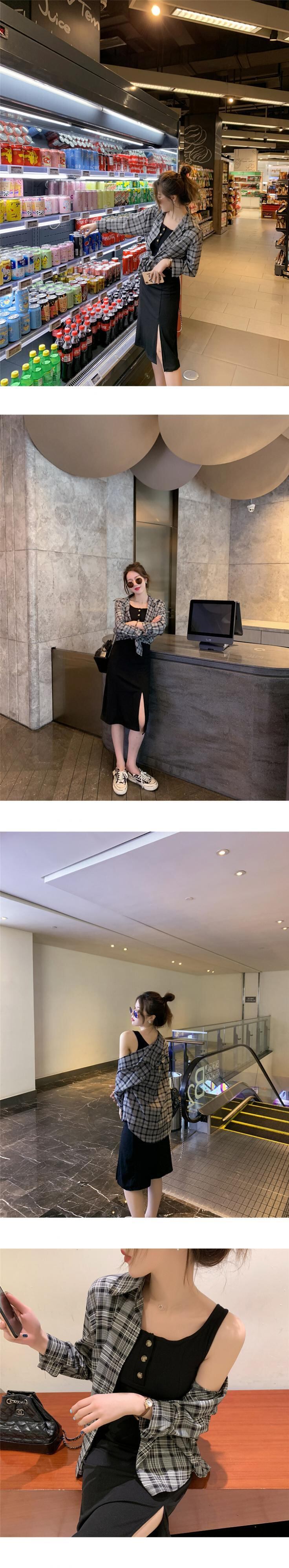 スプリングスタイル格子柄シャツ スタンダードスカート レトロ 春物 6Du_Shop_Women65483587913