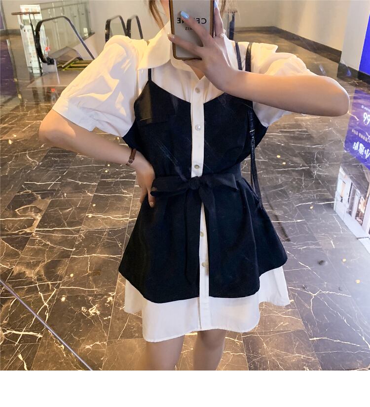 スプリングサマースタンダードスタイルドレス ウェスト薄手Aラインシャツ スカート レトロ 春物 夏物 6Du_Shop_Women36176647641