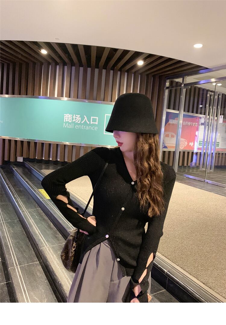 Vネックセーター レディーススプリングスタンダードブラックトップス ロング レトロ 春物 6Du_Shop_Women28551813046