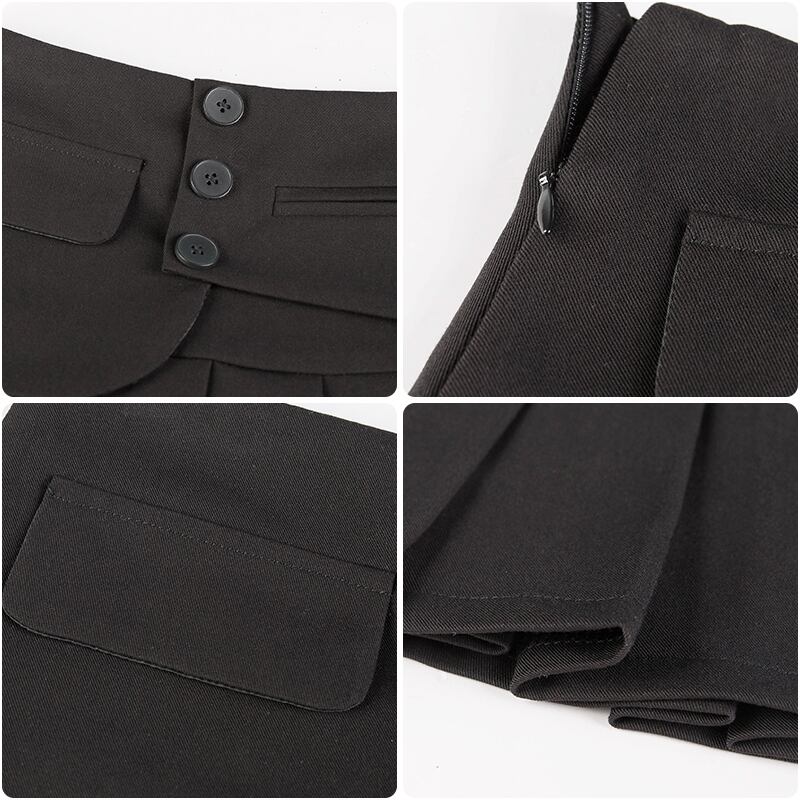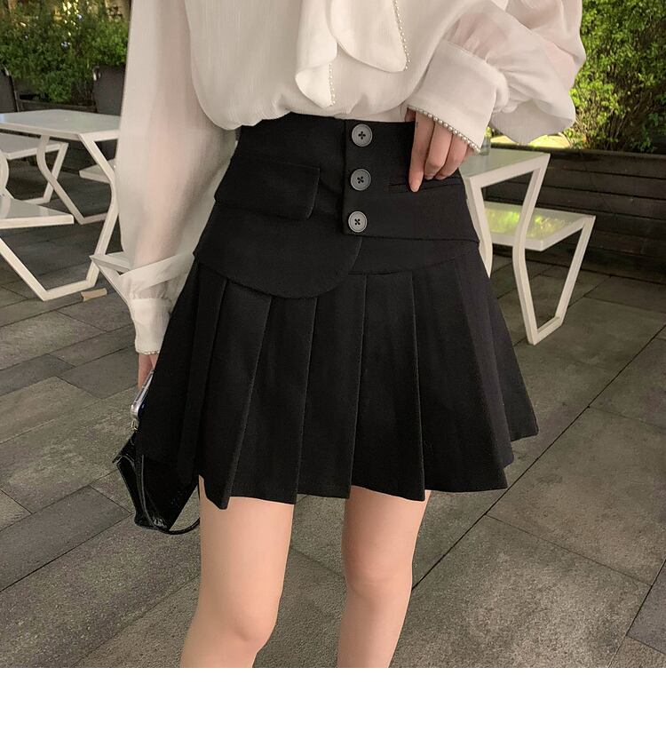 ウェストスタンダードスタイルプリーツAラインショートスカート サマーブラック レトロ 夏物 6Du_Shop_Women25507343767