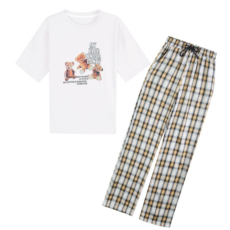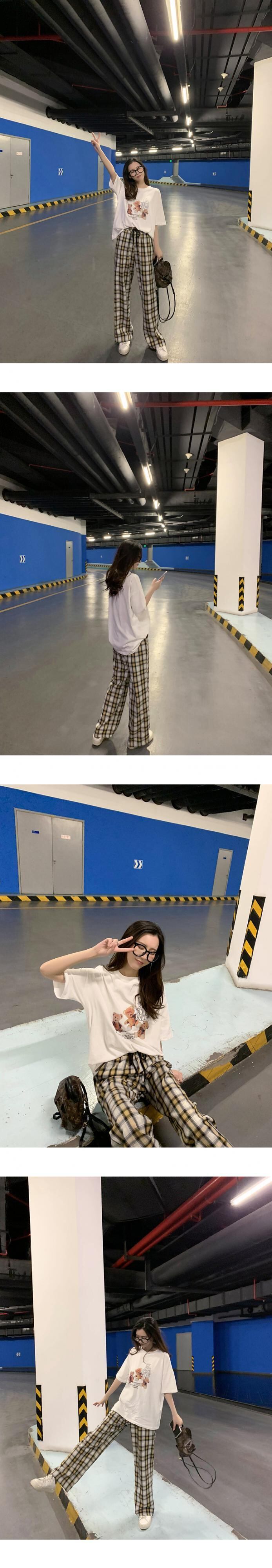 カジュアルTシャツ スプリングハイウェスト格子柄パンツ レッド 春物 6Du_Shop_Women6334539708