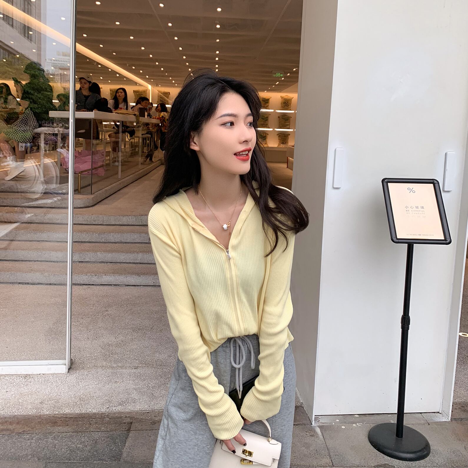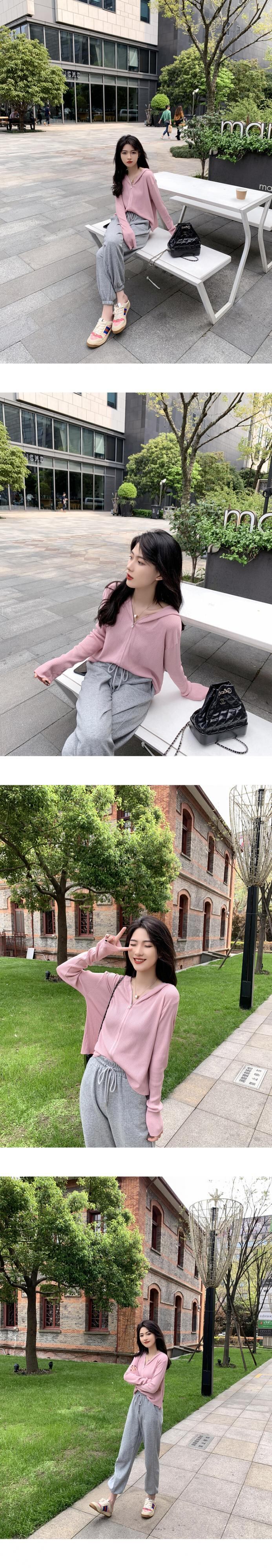 Vネックフード薄手ニットカーディガンスプリングサマースタイルブラウス トップス 春物 夏物 6Du_Shop_Women82233515981
