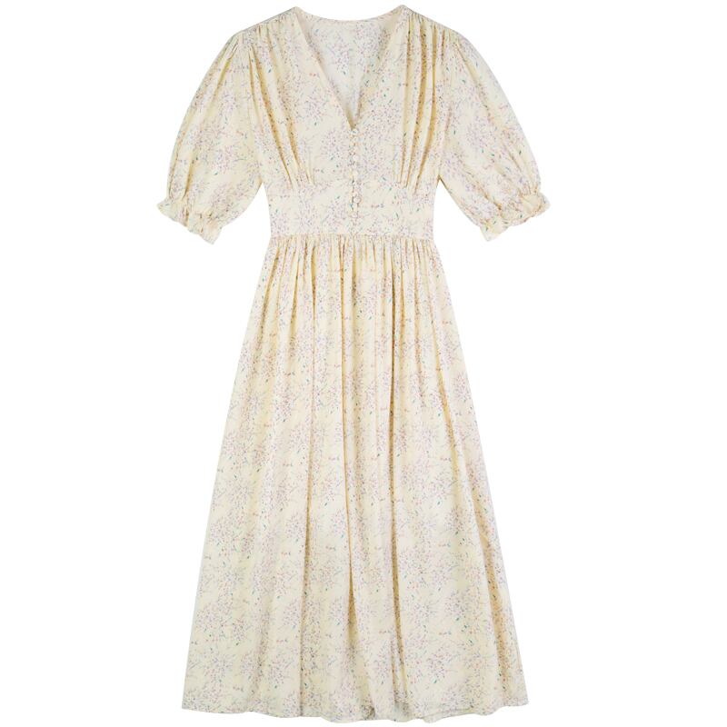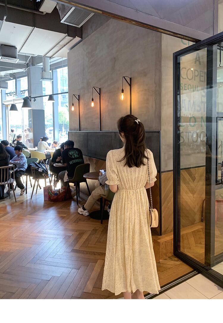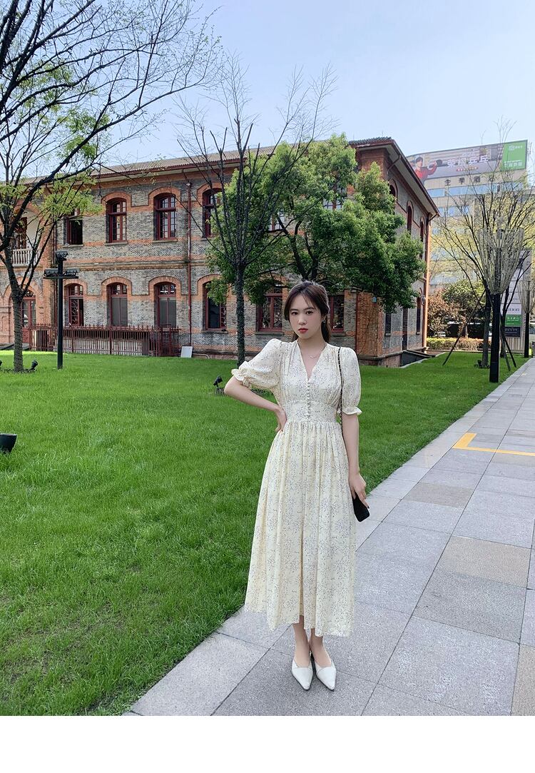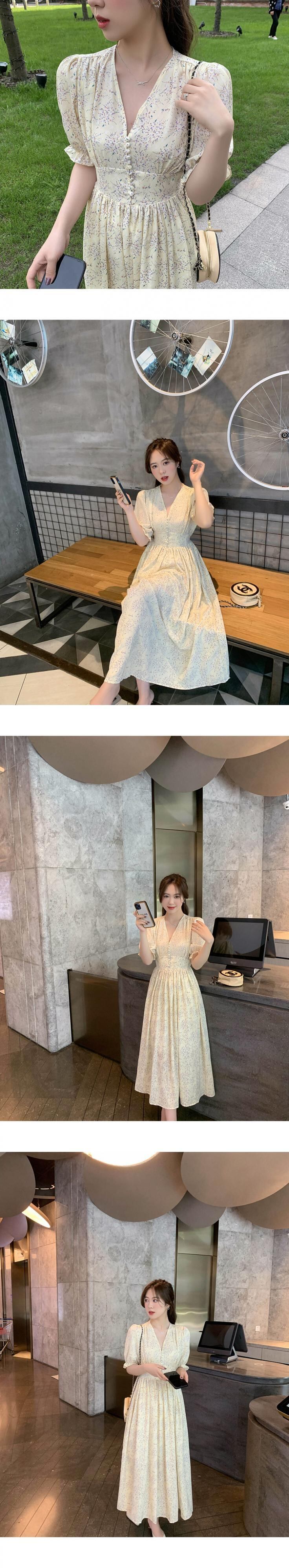 Vネックスリーブシフォンドレス レディースフローラルAラインスカート スプリング 春物 サマー 夏物 花柄 6Du_Shop_Women17747569226