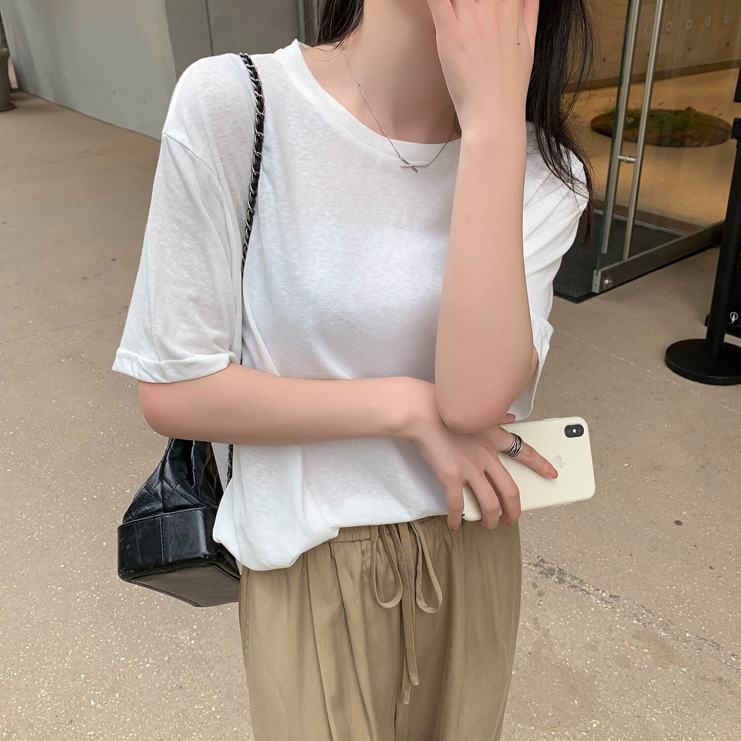 スプリングサマーカラーレッドTシャツ ホワイトトップス 春物 夏物 ピュア 6Du_Shop_Women30478666151