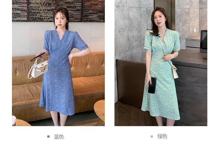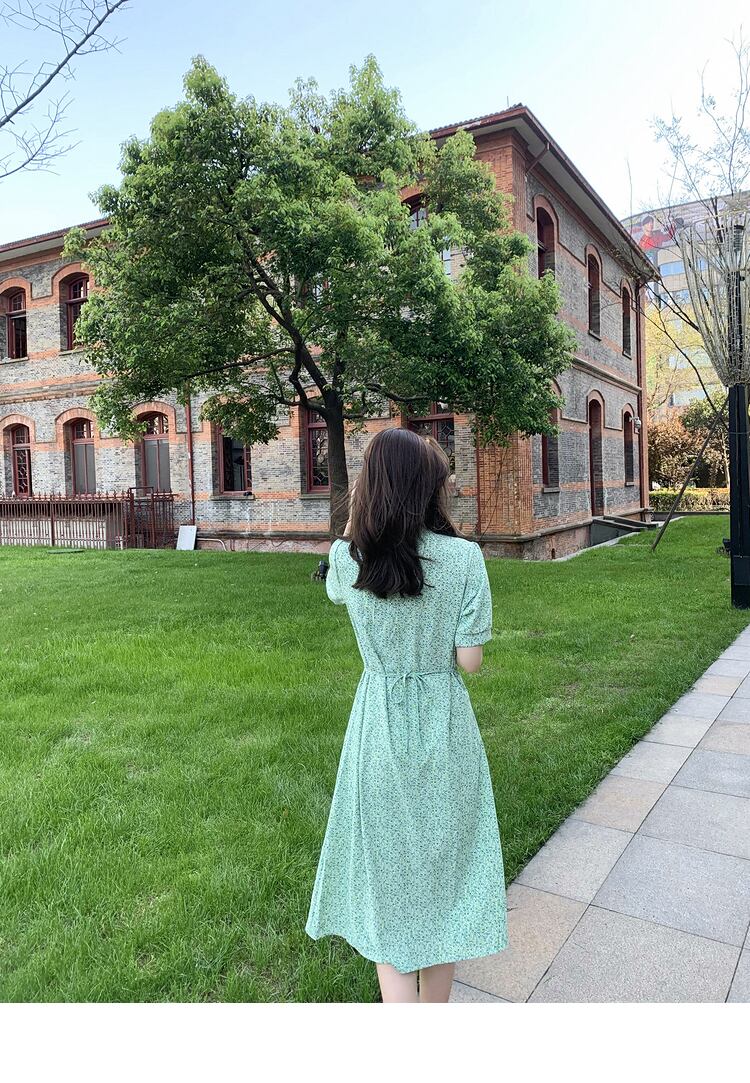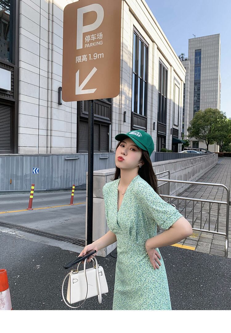 Vネックシフォンドレス スプリングサマースタイルウェスト薄手フローラルAラインスカート 大人ガーリー スウィート キュート カジュアル 春物 夏物 花柄 6Du_Shop_Women38725399056