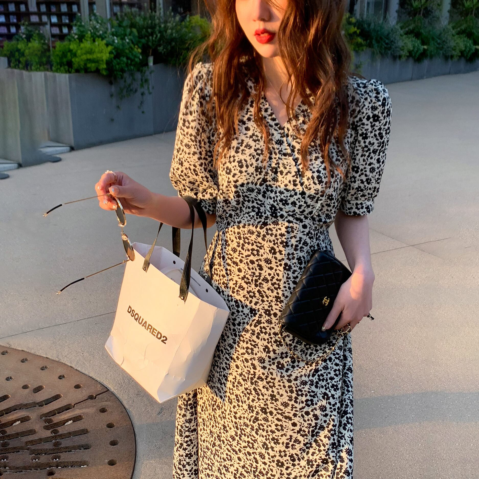 Vネックスタンダードスタイルドレス サマーウェストAラインスカート レトロ 夏物 6Du_Shop_Women95245818210