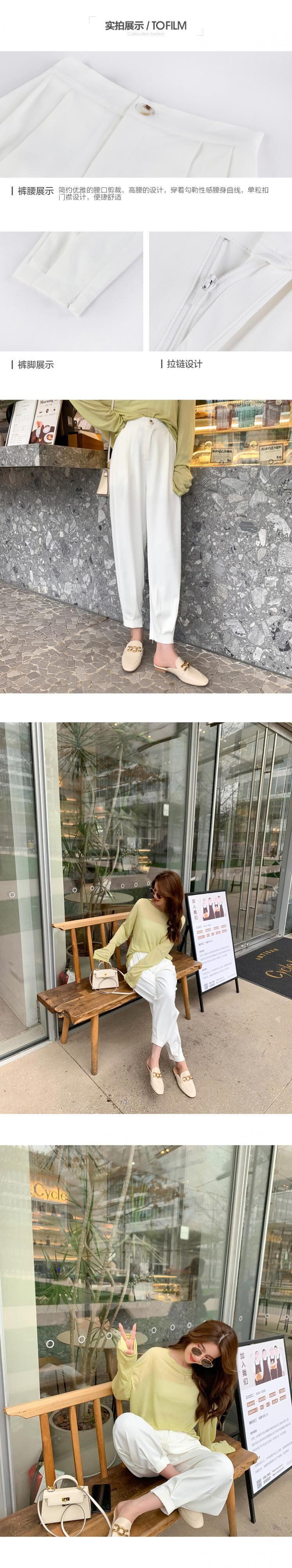 スプリングサマースタイルハイウェストウェストカジュアルパンツ ルーズホワイト 春物 夏物 6Du_Shop_Women72558720522