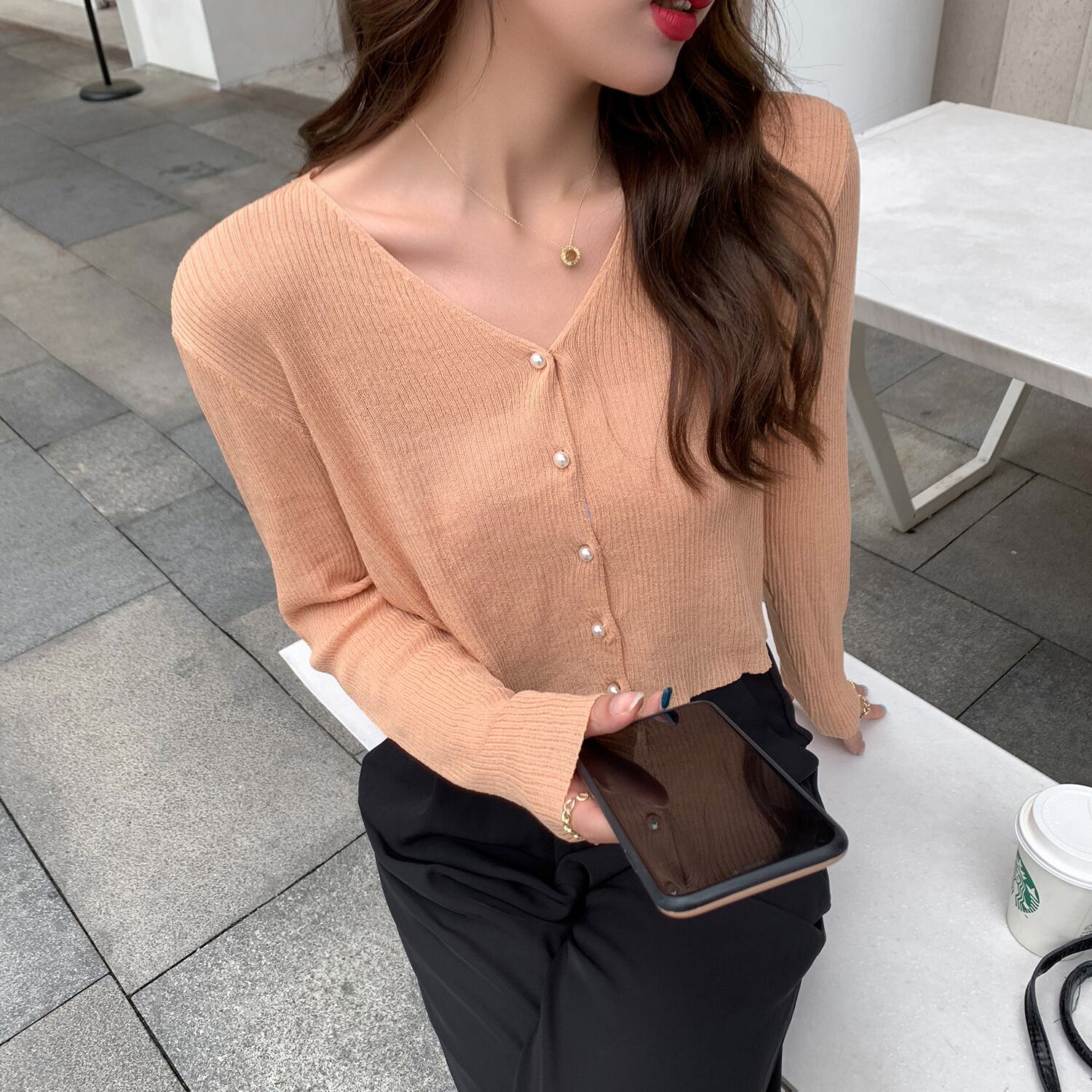 ショートVネックセーター トップス レディーススプリングサマースタイルカーディガン ロング 春物 夏物 6Du_Shop_Women48307226937