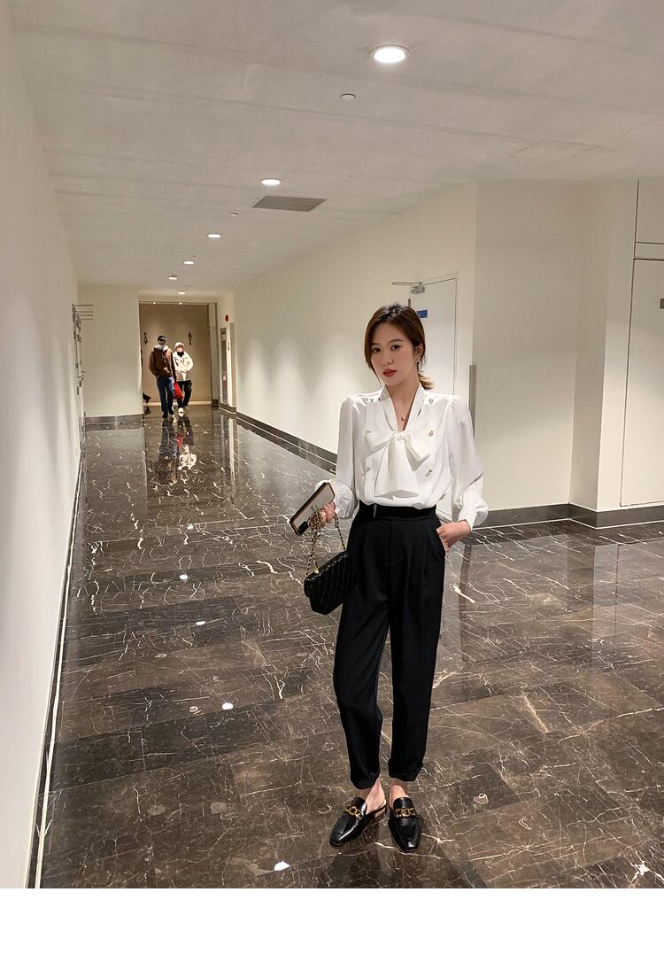 スプリングスタイルダブルブレストシフォンシャツ ホワイトトップス レース 春物 レースアップ 6Du_Shop_Women52809069965