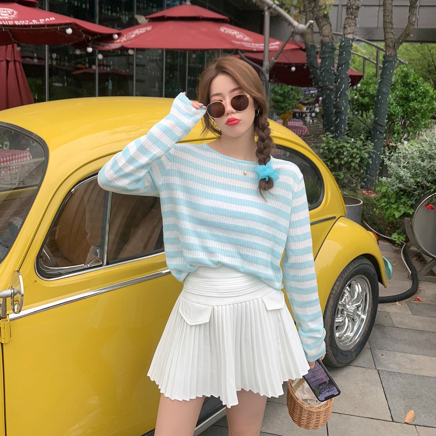 ストライプセーター スプリング薄手ブラウス トップス レディース ロング 大人ガーリー スウィート キュート カジュアル 春物 6Du_Shop_Women58622658124