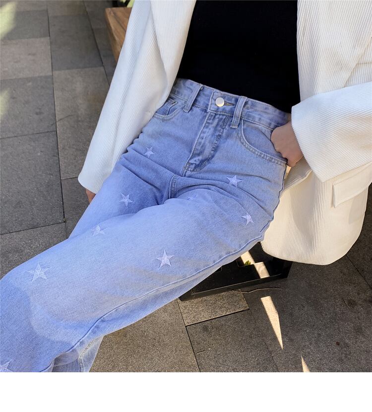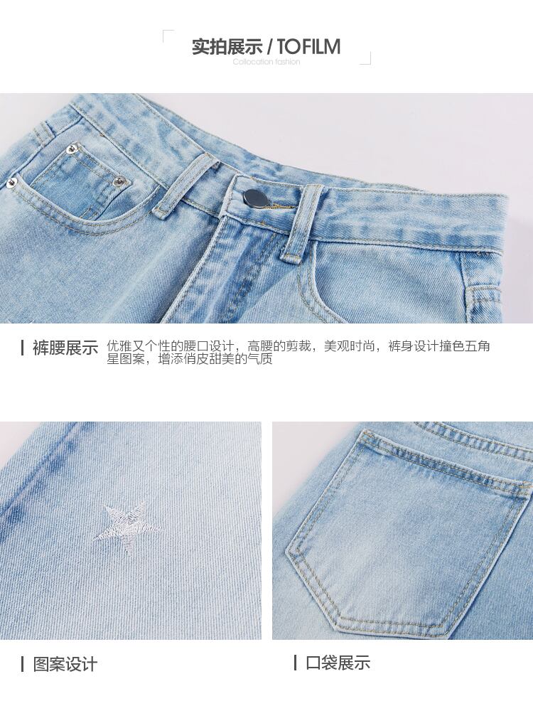スプリングスタイルハイウェストウェストプリント柄ジーンズ ルーズカジュアルパンツ 春物 6Du_Shop_Women64742685819