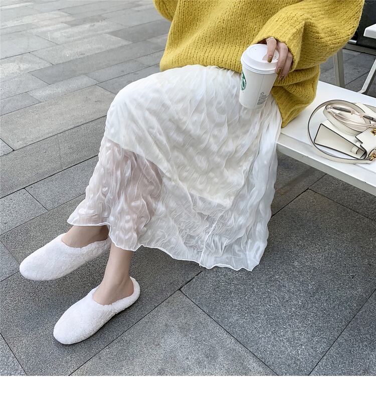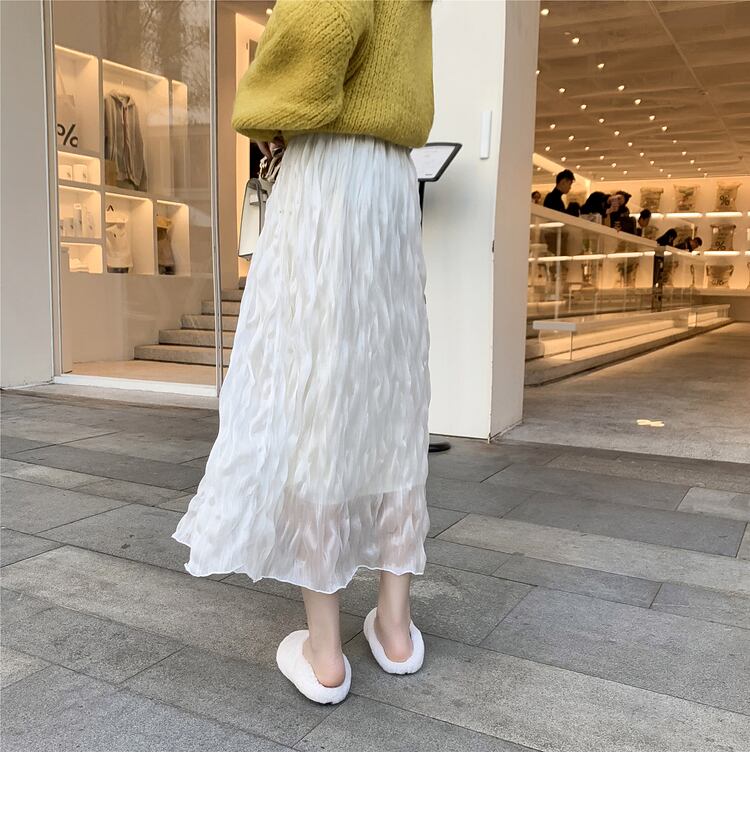 オータムハイウェストウェストシフォンスカート ホワイトAライン エレガント 秋物 6Du_Shop_Women1318999248