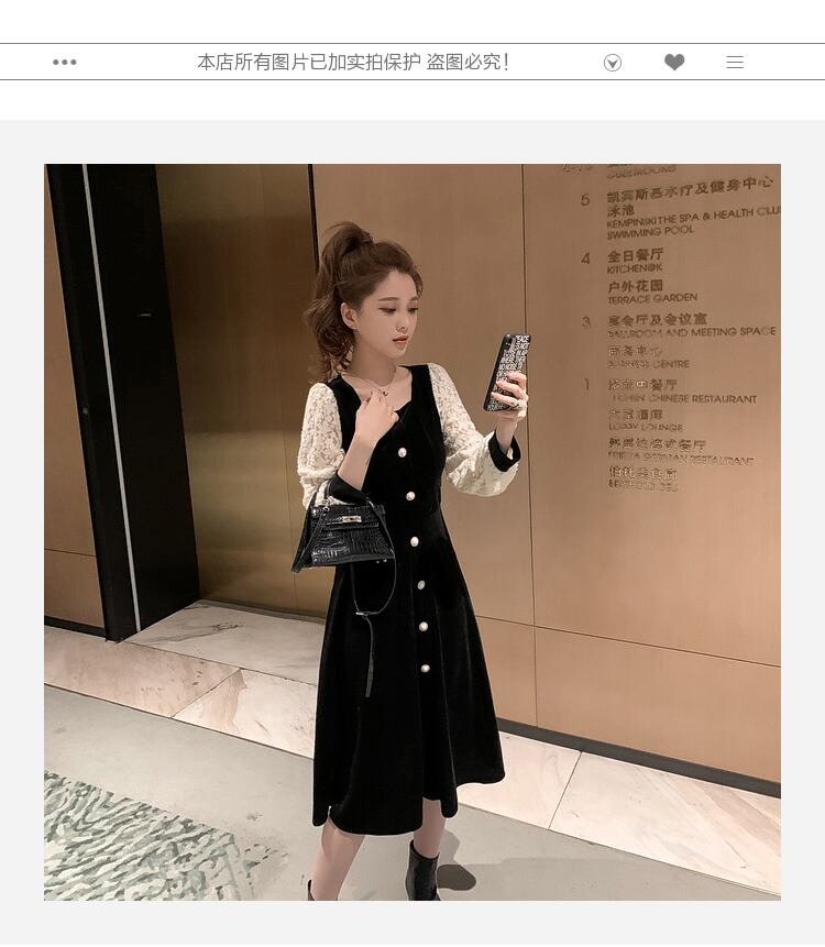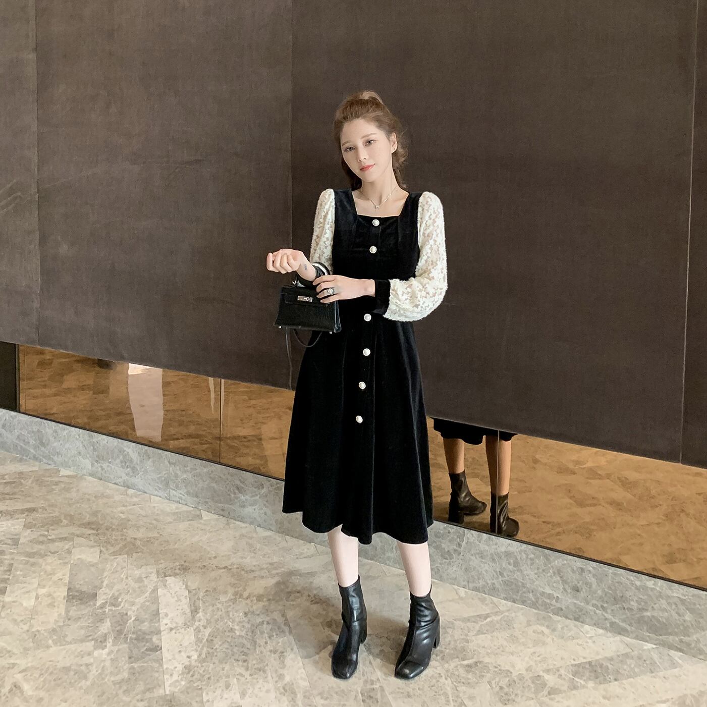 スタイルレースドレス ウィンタースタンダードブラック レトロ 冬物 ステッチ 6Du_Shop_Women25959085863
