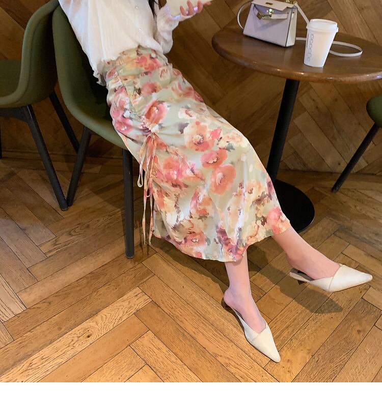 ハイウェストウェストフローラルスカート サマースタイルAラインロング 大人ガーリー スウィート キュート カジュアル 夏物 花柄 6Du_Shop_Women36854597503