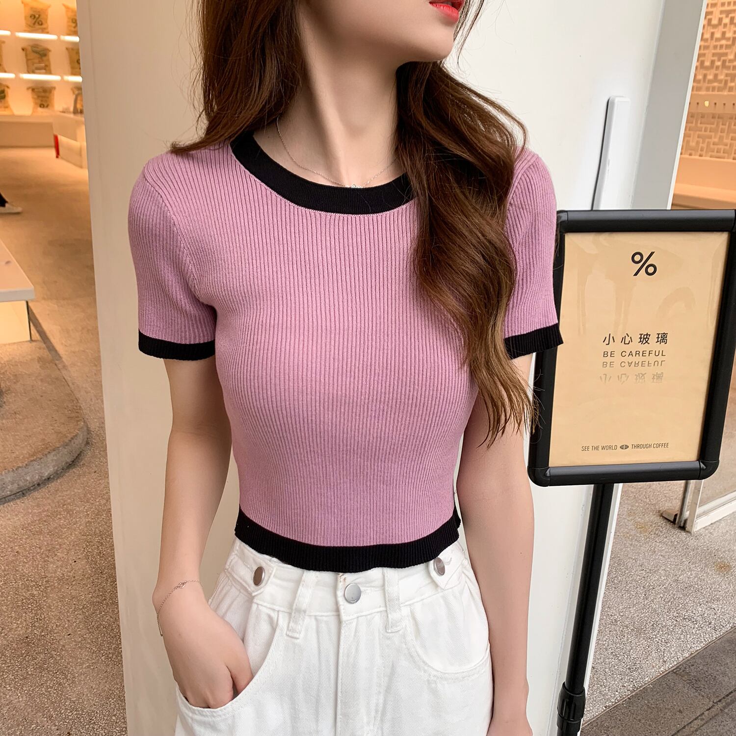 サマーショートニットセーター 薄手シャツ 大人ガーリー スウィート キュート カジュアル 夏物 6Du_Shop_Women51543604706