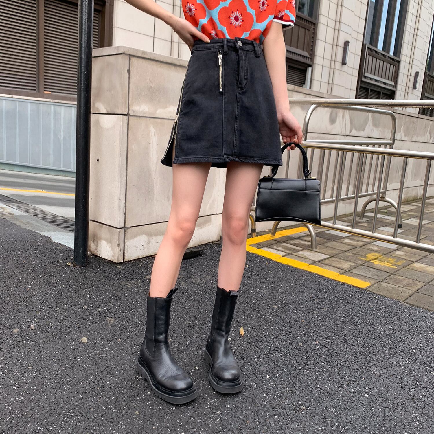 サマースタイルスタンダードハイウェストウェスト薄手Aラインスカート ブラックショート レトロ 夏物 6Du_Shop_Women29621379932