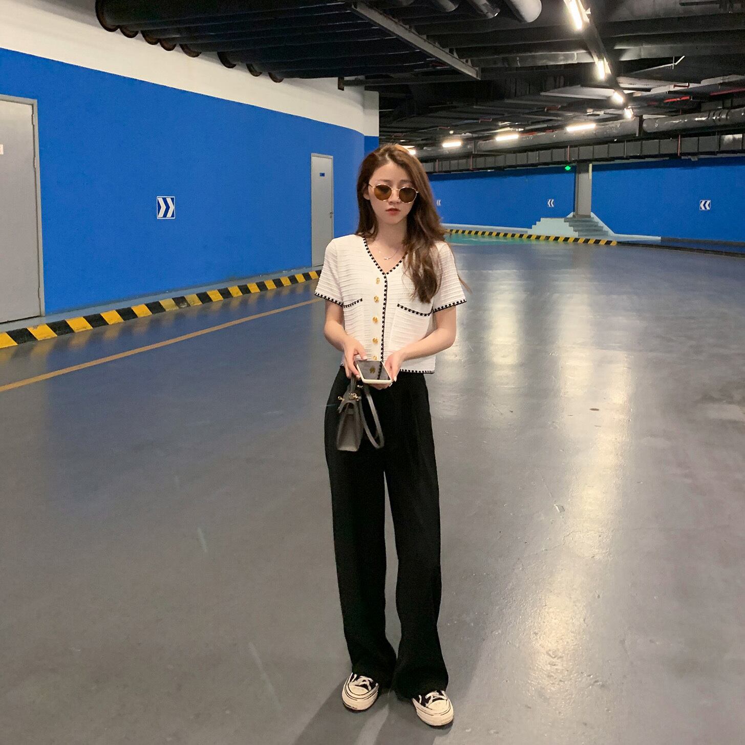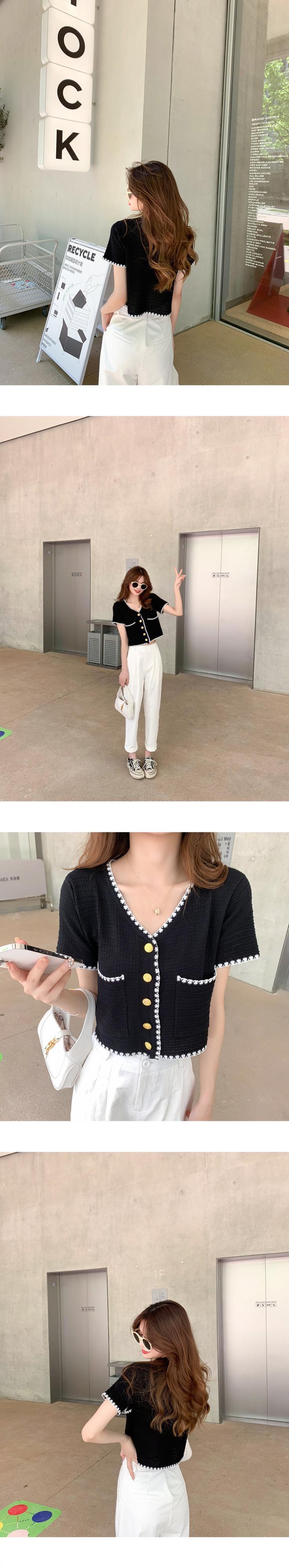 Vネックショートニットカーディガンサマースタンダードハイウェストウェストブラウス レトロ 夏物 6Du_Shop_Women74823557726