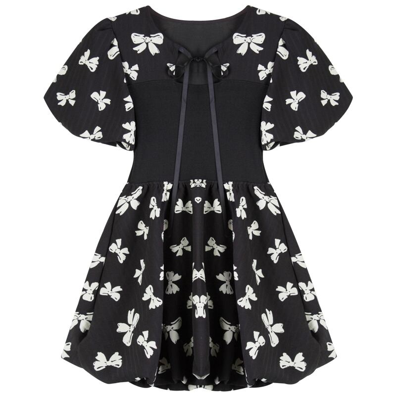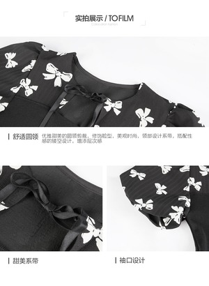 スタンダードスタイルフローラルドレス サマーウェスト薄手ブラックスカート レトロ 夏物 花柄 6Du_Shop_Women51614073762