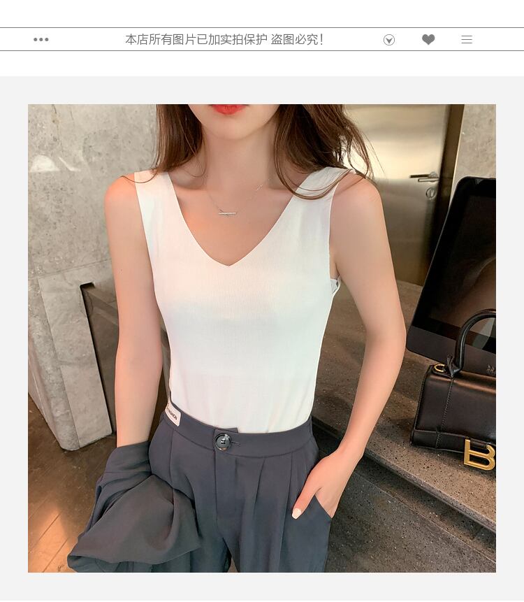 ソリッド カラーノースリーブレディースサマースタイルVネックトップス 夏物 ソリッドカラー 6Du_Shop_Women39156939751