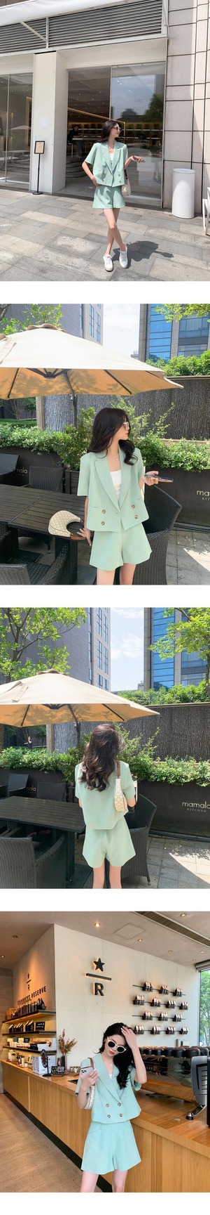 色:グリーンジャケット,グリーンショートパンツ,白いコート,ホワイトショーツ,黒いジャケット,黒のショートパンツ