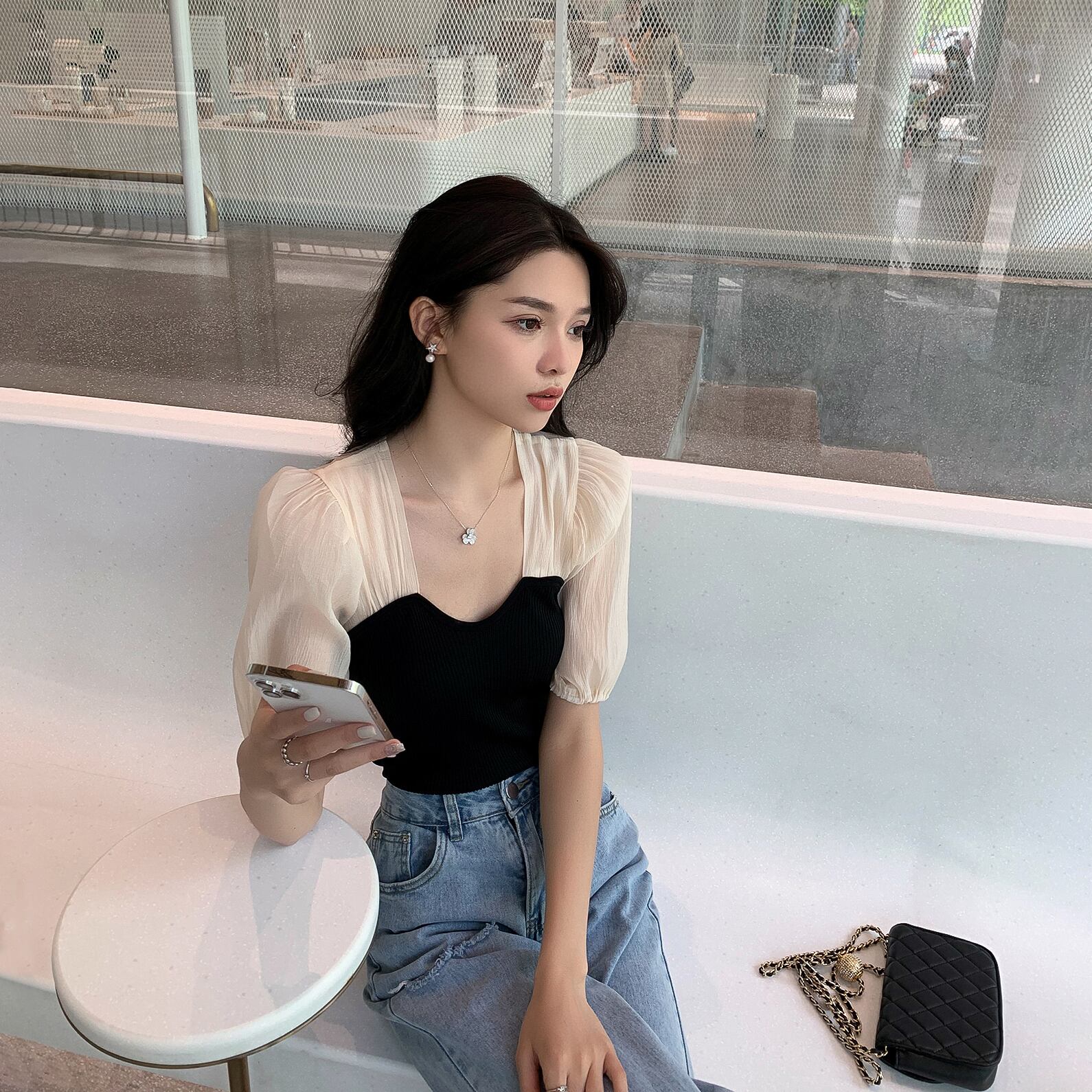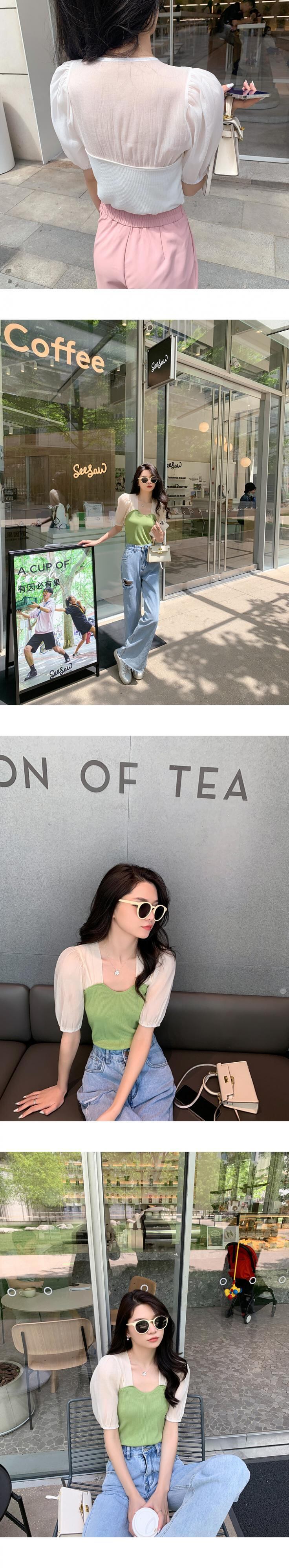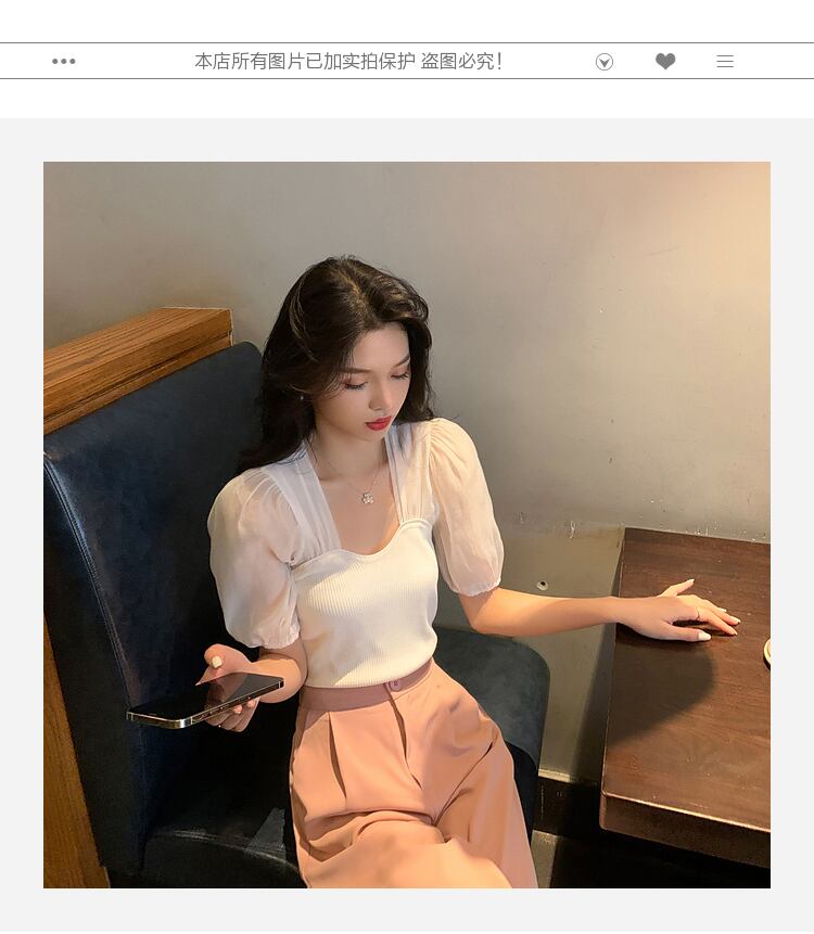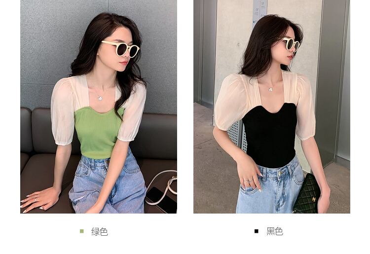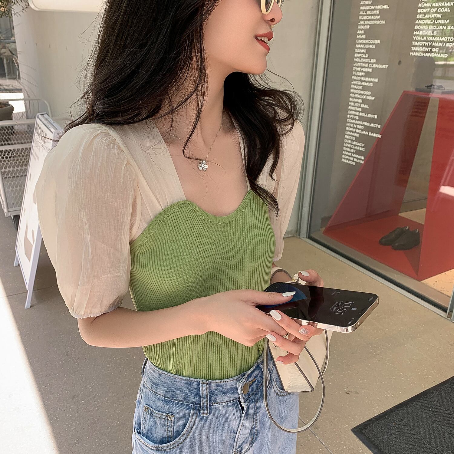 サマースタイルスタンダードスリーブメッシュニットセーター トップス レトロ 夏物 スクウェア ステッチ 6Du_Shop_Women93962837955