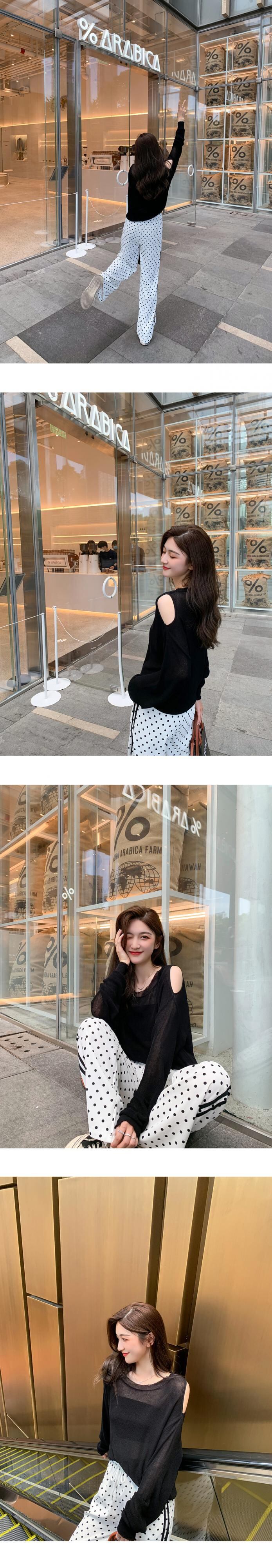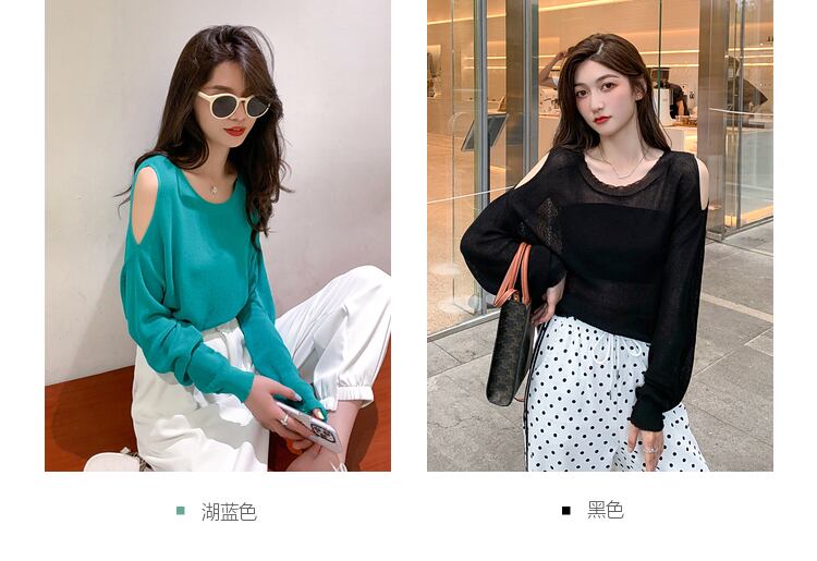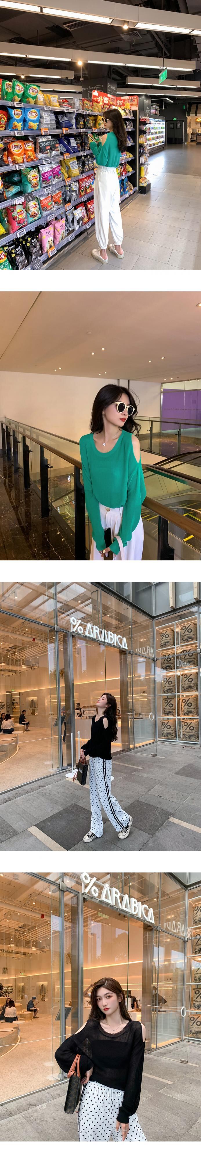 薄手セーター サマートップス ロング 大人ガーリー スウィート キュート カジュアル 夏物 オフショルダー 6Du_Shop_Women24883711210