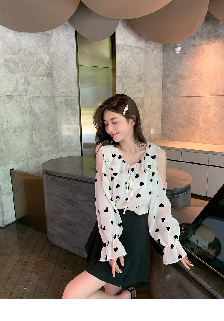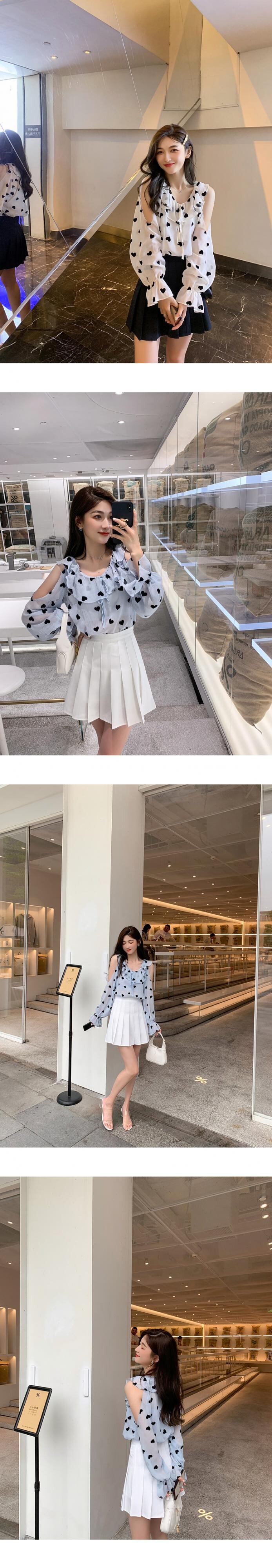 サマースタイルストラップレスプリントシフォンシャツ トップス 夏物 6Du_Shop_Women76222582067