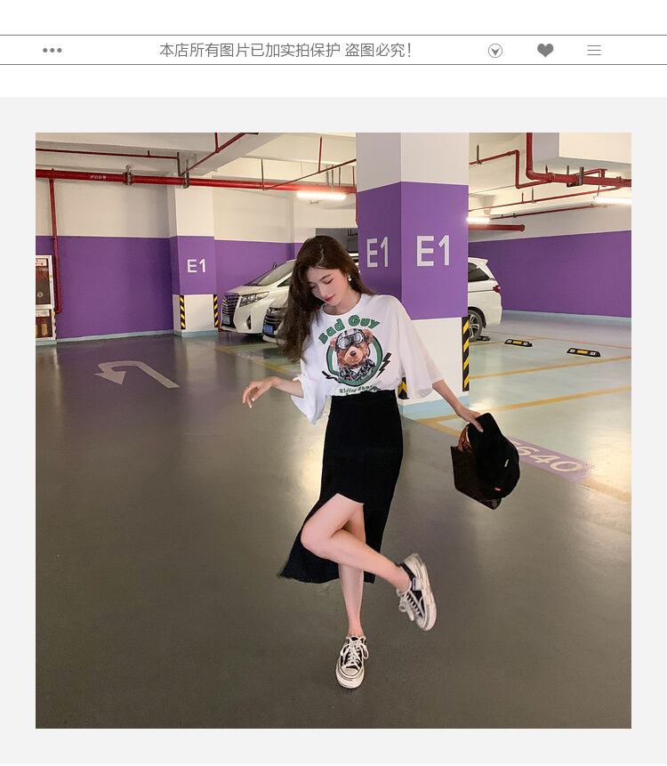 カジュアルプリント柄Tシャツ サマーハイウェストウェストスカート 夏物 6Du_Shop_Women5970990841