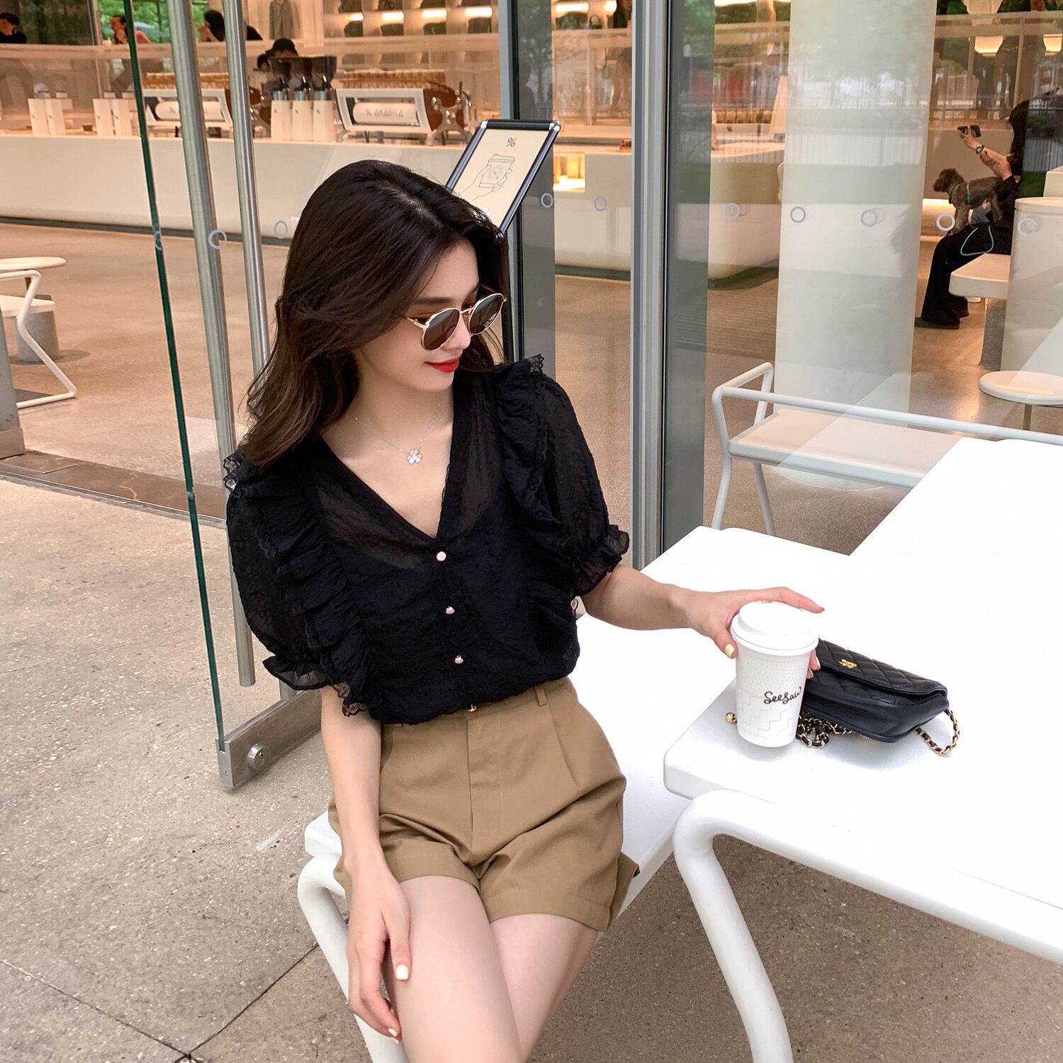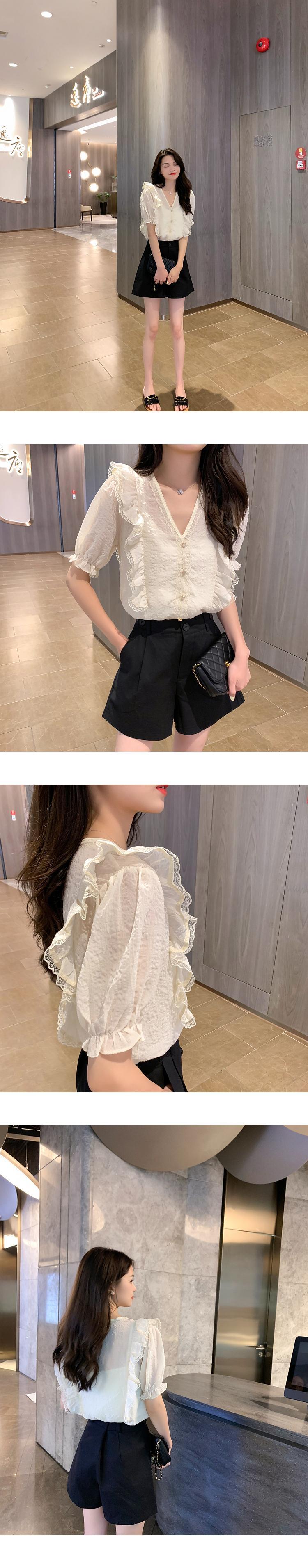 Vネックスリーブレースシャツ 6Du_Shop_Women68171735675