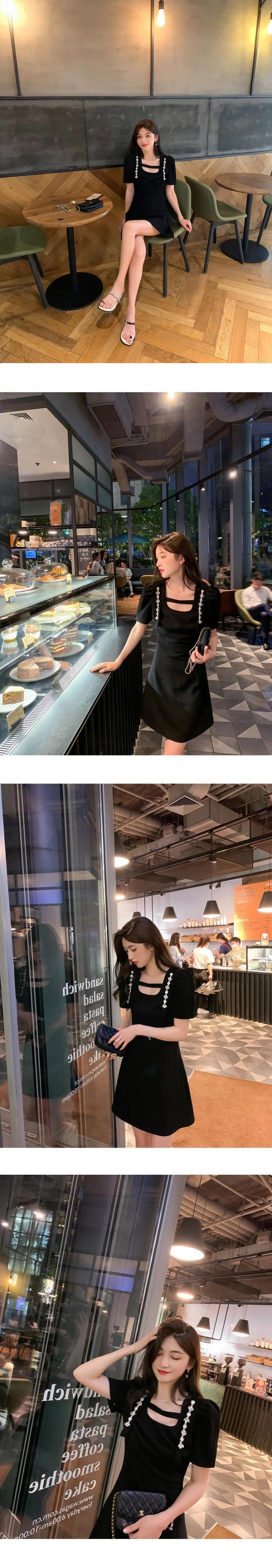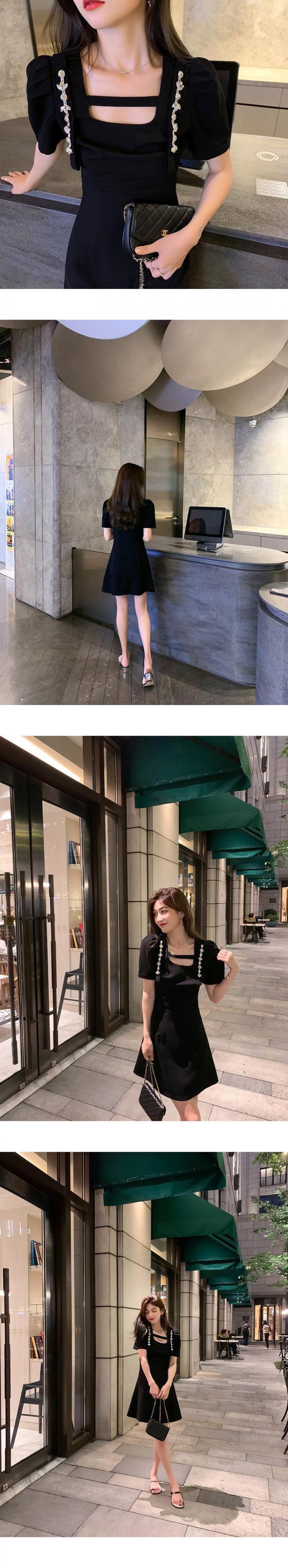 スタイルウェストドレス サマースタンダードブラック レトロ 夏物 6Du_Shop_Women48342699076