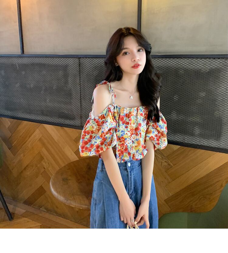 ストラップレススリーブフローラルブラウス サマースタイルトップス ストリート 夏物 花柄 6Du_Shop_Women38056855025